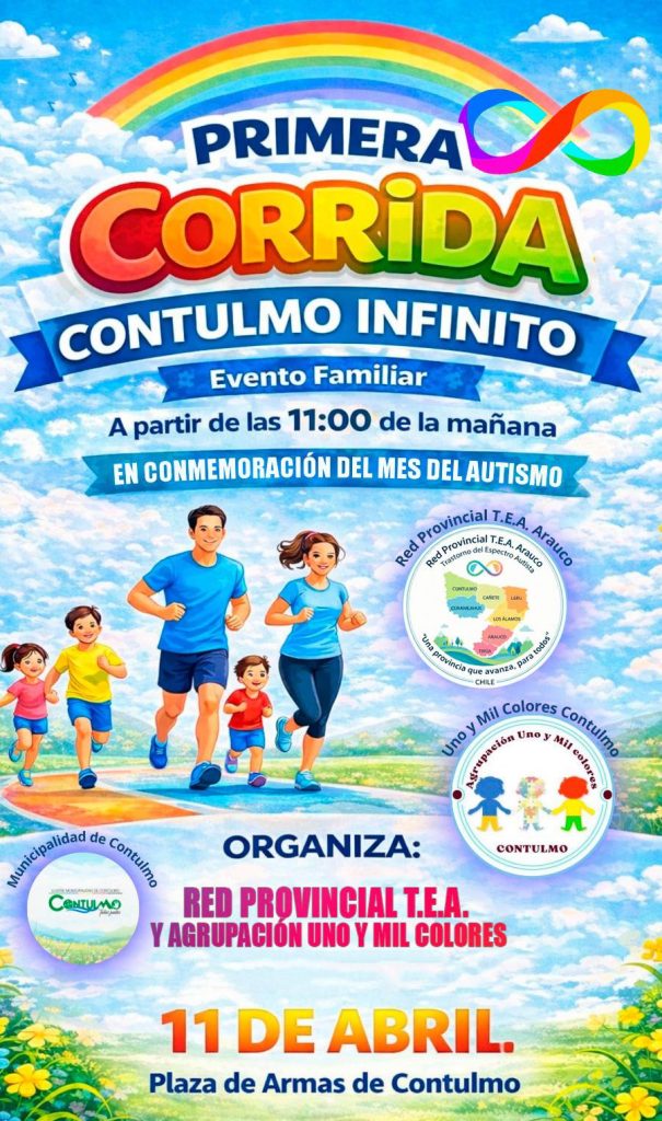Hoy, en el marco del Día de la Concienciación sobre el Autismo ♾️, la Ilustre Municipalidad de Contulmo te invita a ser parte de una jornada muy especial: nuestra Primera Corrida Familiar «Contulmo Infinito». 🏃‍♂️🏃‍♀️💨