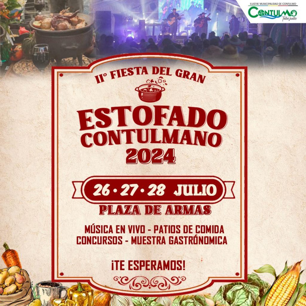 Nos encontramos este 26, 27 y 28 de julio en nuestra Plaza de Armas con música en vivo, patios de comida, concursos y muestras gastronómicas.